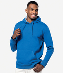 80% ringspun combed cotton/20% polyester. Low shrinkage brushed fleece fabric.Silicone wash.Drop shoulder style.Contrast inner hood and neck tape - heather grey on all colours except oxford grey is mid grey.Self colour drawcord.Front pouch pocket.Ribbed cuffs and hem.